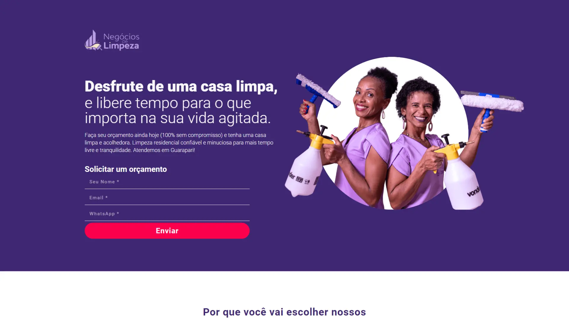 Tenha uma landing page profissional pronta para converter visitantes em clientes em poucos dias.